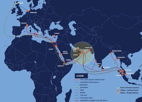 依照方案,PEACE海底光纜體系第一階段將銜接巴基斯坦、吉布提、索馬里和肯尼亞,第二階段將向南部擴展,銜接至非洲和歐洲。